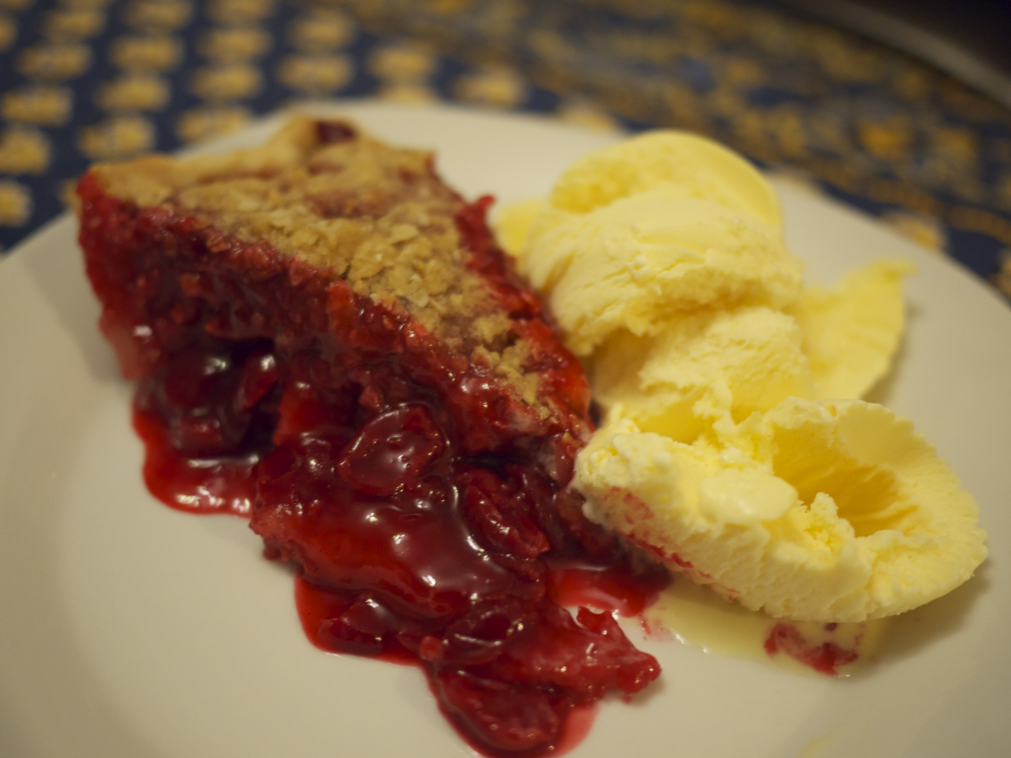 sour cherry crumble pie served with vanilla ice cream – yum!
