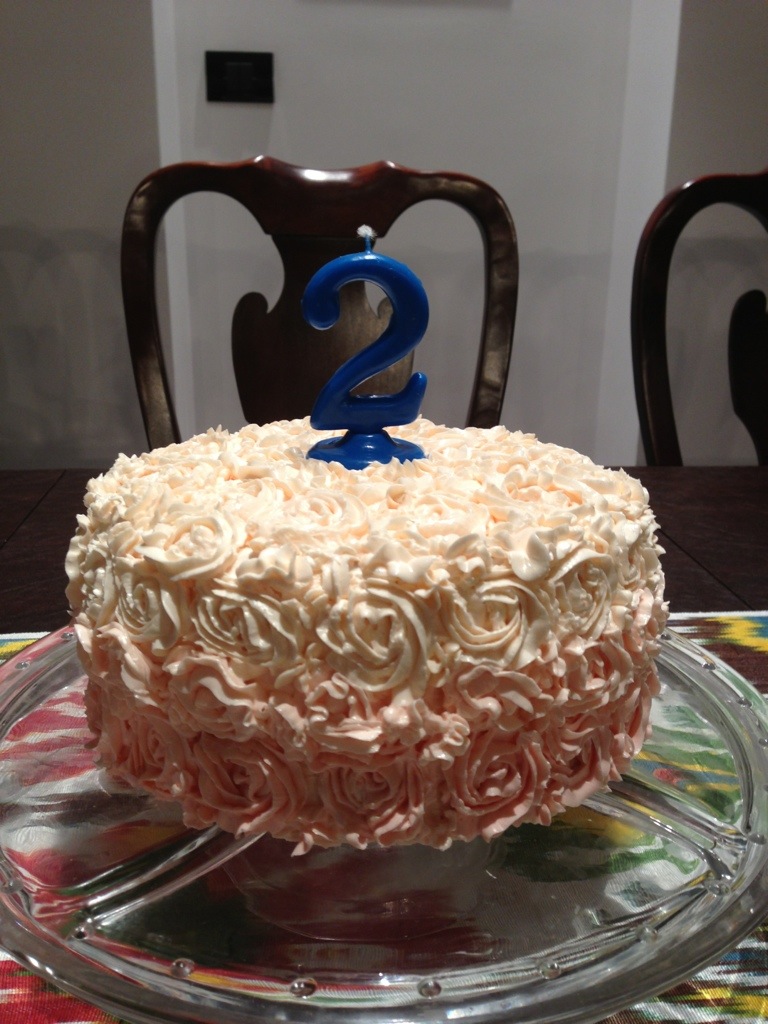 the ombre (I’ve been told ombre is “in” right now) birthday cake I made for the humans to consume: almond cake with raspberry filling and swiss meringue buttercream (recipe to follow in a future post)