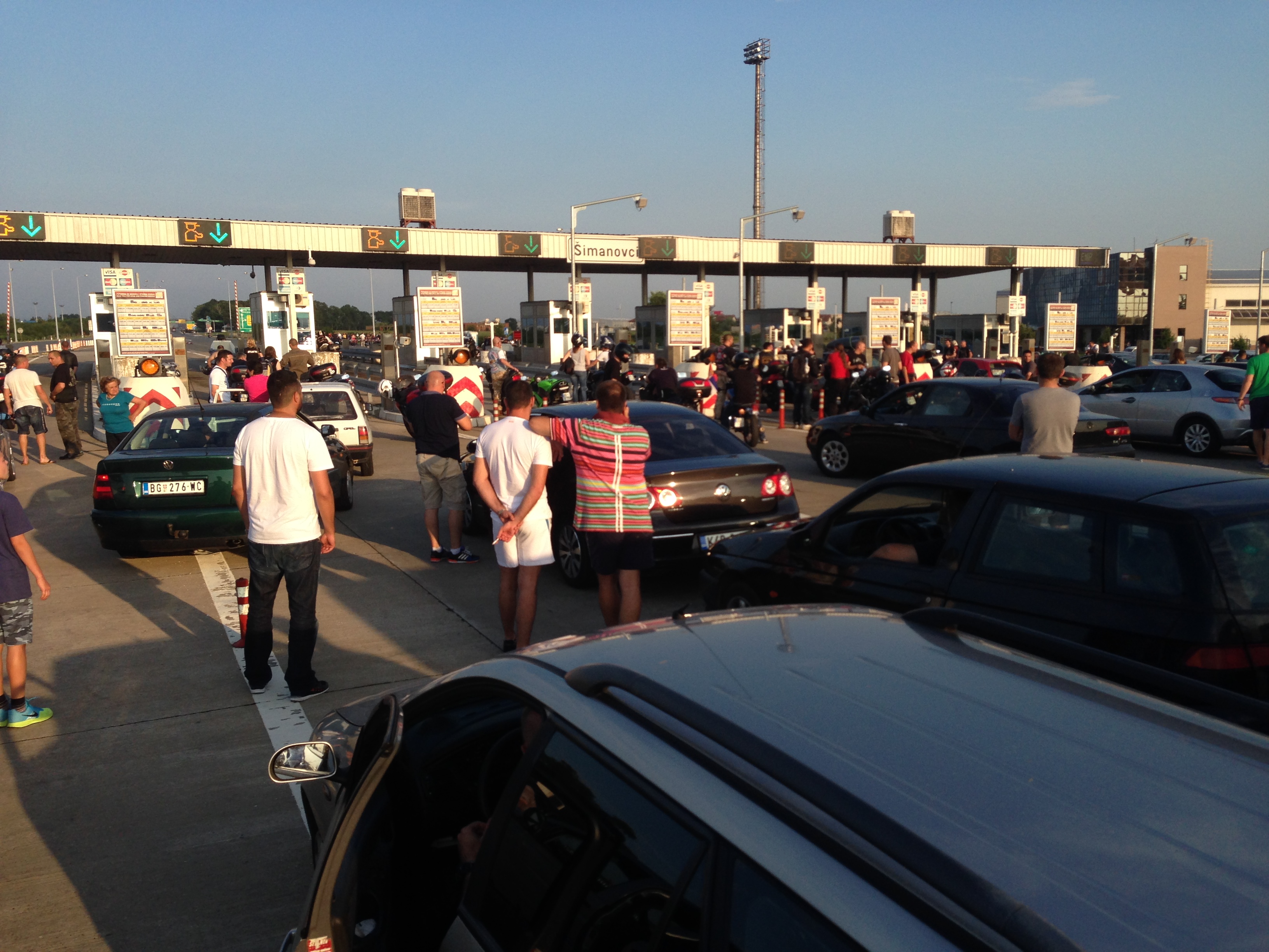 As it turned out, the tolls were being bodily blocked by motorcyclists and their riders, who were protesting something — I think about the difficulties of registering their bikes or something along those lines — and not allowing anyone to go through the tolls as part of their protest.