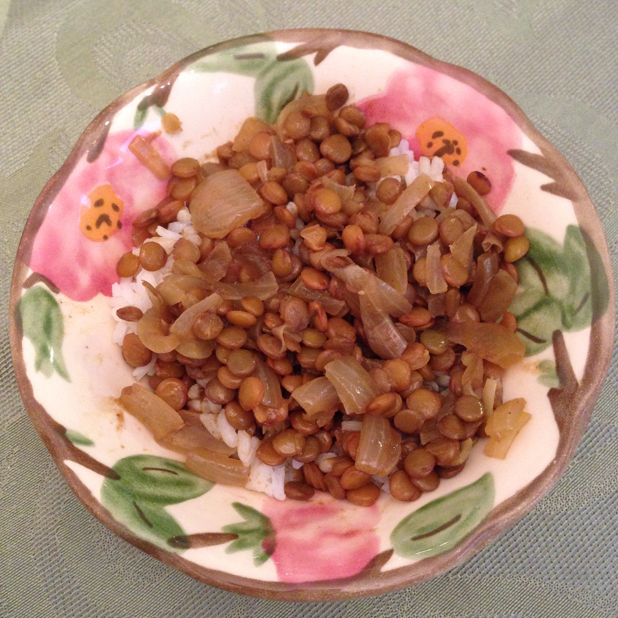 The lentils are easy, delicious, and very filling. They can be eaten on their own or served with rice — and sometimes rice is necessary, depending on how hot the curry powder makes the dish! (For example, the curry powder currently in our pantry happens to be very spicy, much more so than what I had picked up in a small tea and spice shop recommended to me by a local in New Delhi when we were in India!) I’ve even made them vegetarian-friendly by using vegetable instead of beef bouillon.